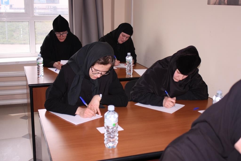 Сестры четырех женских монастырей и пяти подворий, многие из которых уже не одно десятилетие подвизаются на монашеском поприще, сдавали экзамен, отвечали на билеты перед настоятельницами: Казанского девичьего монастыря игуменией Анастасией (Мордмиллович), женского монастыря в честь Калужской иконы Божией Матери игуменией Параскевой (Ляховой) и Свято-Успенского Лихвинского женского монастыря игуменией Михаилой (Осиповой).
