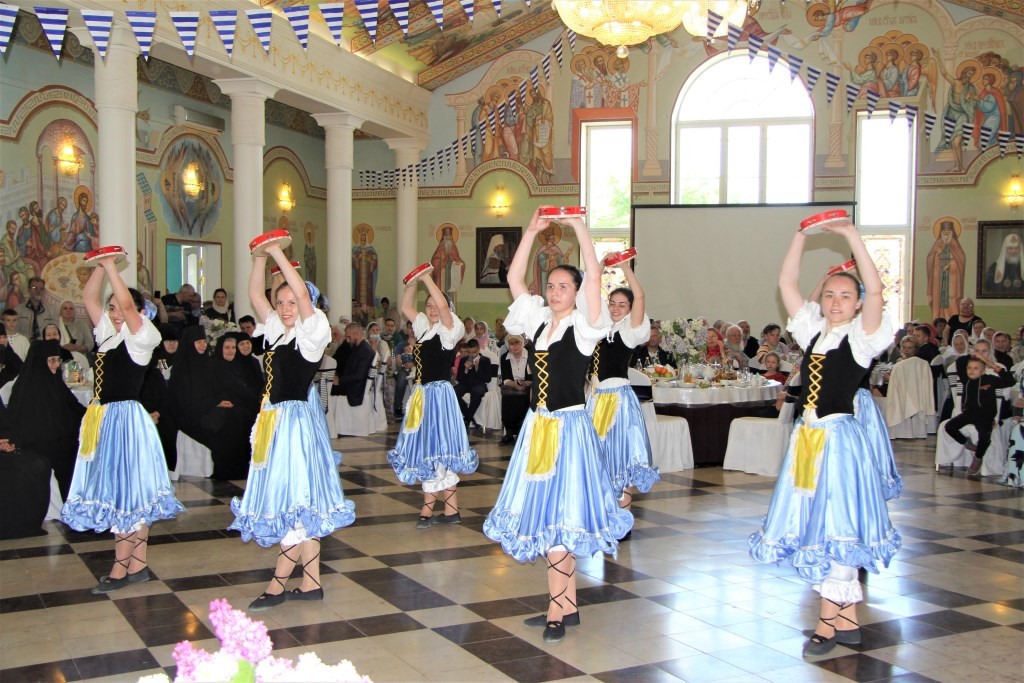 После богослужения прошел праздничный крестный ход вокруг храма. В большой трапезной обители для прихожан и гостей был организован обед, во время которого был показан документальный фильм о паломничестве игумении Николаи с сестрами и девочками пансиона «Отрада» в Бари, к мощам святителя Николая (поездка состоялась в декабре 2019 года, незадолго до начала пандемии). Кадры праздничного концерта в Бари стали своеобразным анонсом к «живому» концерту, который воспитанницы пансиона «Отрада» и студентки Центра православных медиа РГСУ – «университета в стенах монастыря» представили в трапезной сразу после завершения обеда. Танцы народов мира – русские, финские, итальянские, песни о святителе Николае и о том, как его любят во всем мире – были основным содержанием праздничного концерта-спектакля.