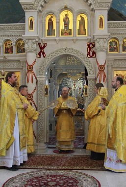 День начался с праздничной Божественной литургии архиерейским чином, которую возглавил Преосвященнейший Иосиф, епископ Тарусский, викарий Калужской епархии. Для Его Преосвященства это также был день тезоименитства, так как на 22 мая приходится память преподобного Иосифа Оптинского – небесного покровителя владыки.