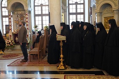 За богослужением молились настоятельница Никольского Черноостровского монастыря игумения Николая (Ильина), игумении и старшие сестры женских монастырей, скитов и подворий Калужской, Козельской, Псковской, Саратовской, Ахтубинской, Северо-Байкальской епархий.