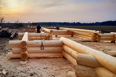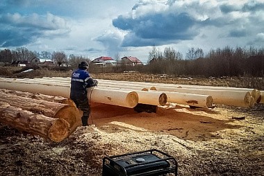 Изготовлением сруба занимается бригада из семи человек. Он будет готов примерно через полтора месяца.