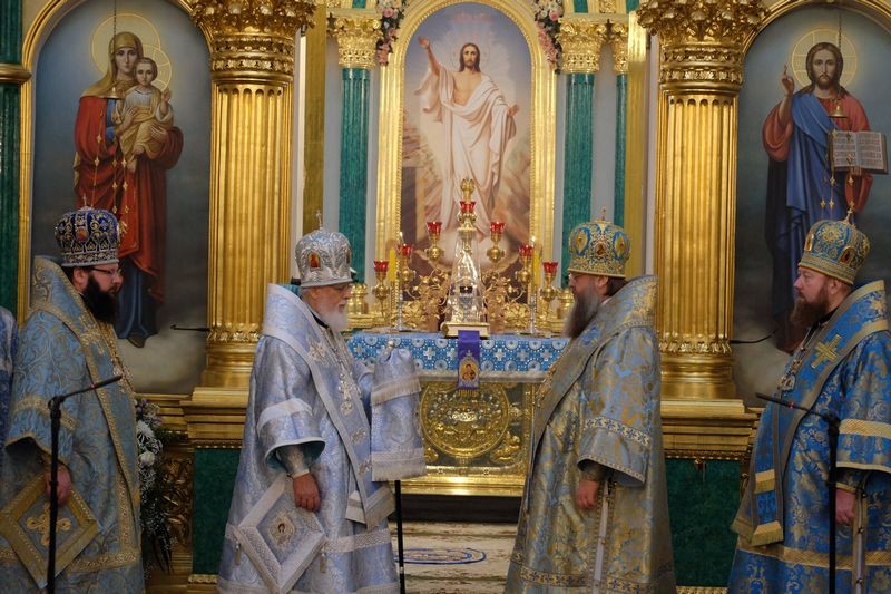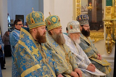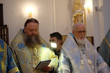 С праздником Корсунской (Ефесской) иконы Божией Матери правящий архипастырь поздравил всех участников богослужения, пожелав укрепления веры в неоскудеваемый источник благодатной помощи Пречистой Девы.