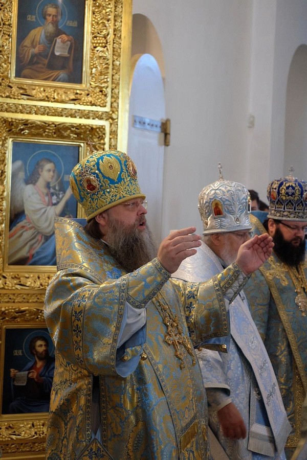 За праздничным богослужением Его Высокопреосвященству сослужили: митрополит Ростовский и Новочеркасский Меркурий, председатель Синодального отдела религиозного образования и катехизации; митрополит Смоленский и Дорогобужский Исидор; епископ Бежецкий и Весьегонский Филарет; наместник Нило-Столобенской пустыни архимандрит Аркадий (Губанов); духовенство Тверской епарии.