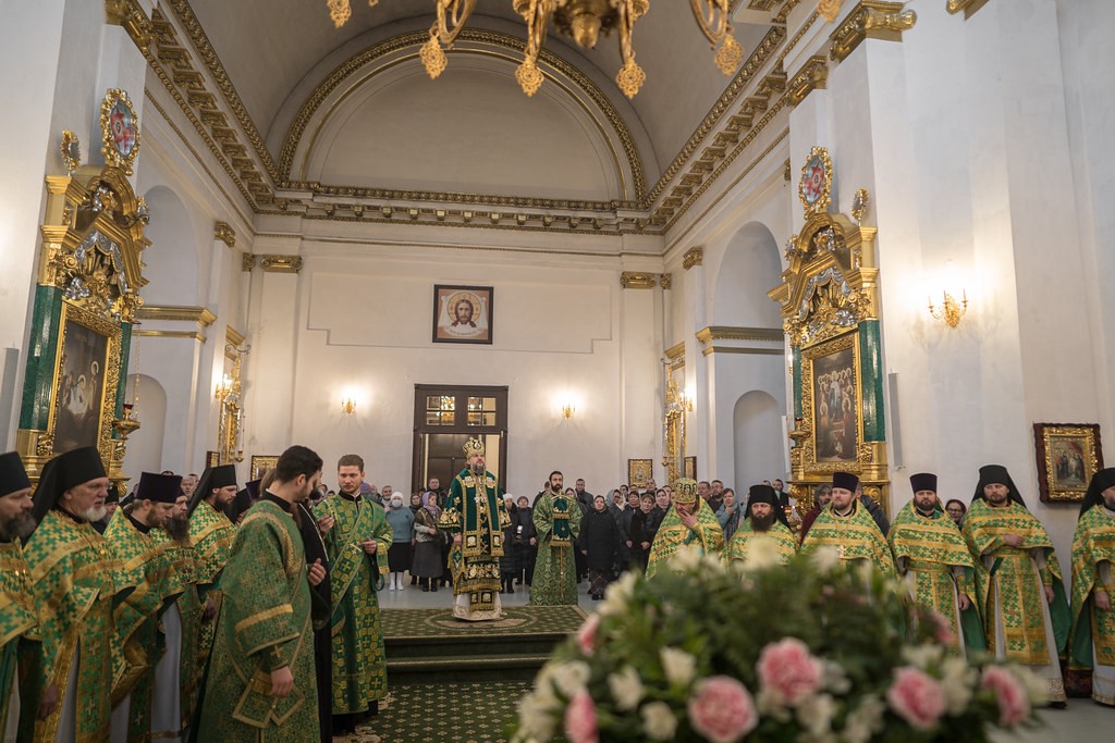 На запричастном стихе наместник Нило-Столобенской пустыни произнес проповедь.