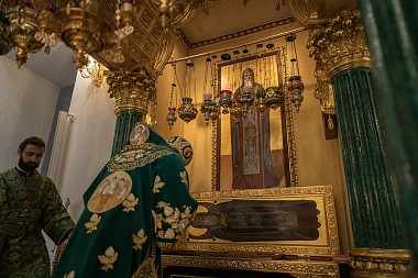 По заамвонной молитве митрополит Амвросий в сослужении духовенства совершил краткий молебен и прочитал молитву преподобному Нилу у раки с его святыми мощами.