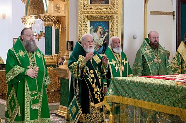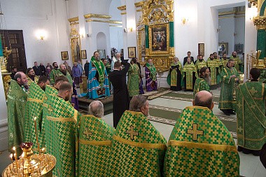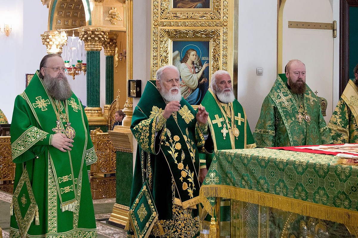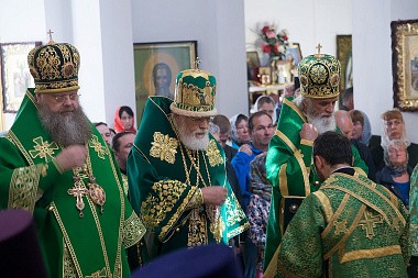 Его Высокопреосвященству сослужили митрополит Ростовский и Новочеркасский Меркурий, епископ Ржевский и Торопецкий Адриан, епископ Канский и Богучанский Филарет, епископ Бежецкий и Весьегонский Филарет, епископ Великолукский и Невельский Сергий, епископ Рославльский и Десногорский Мелетий, наместник монастыря архимандрит Аркадий (Губанов), братия монастыря в священном сане и прибывшее на праздник духовенство.