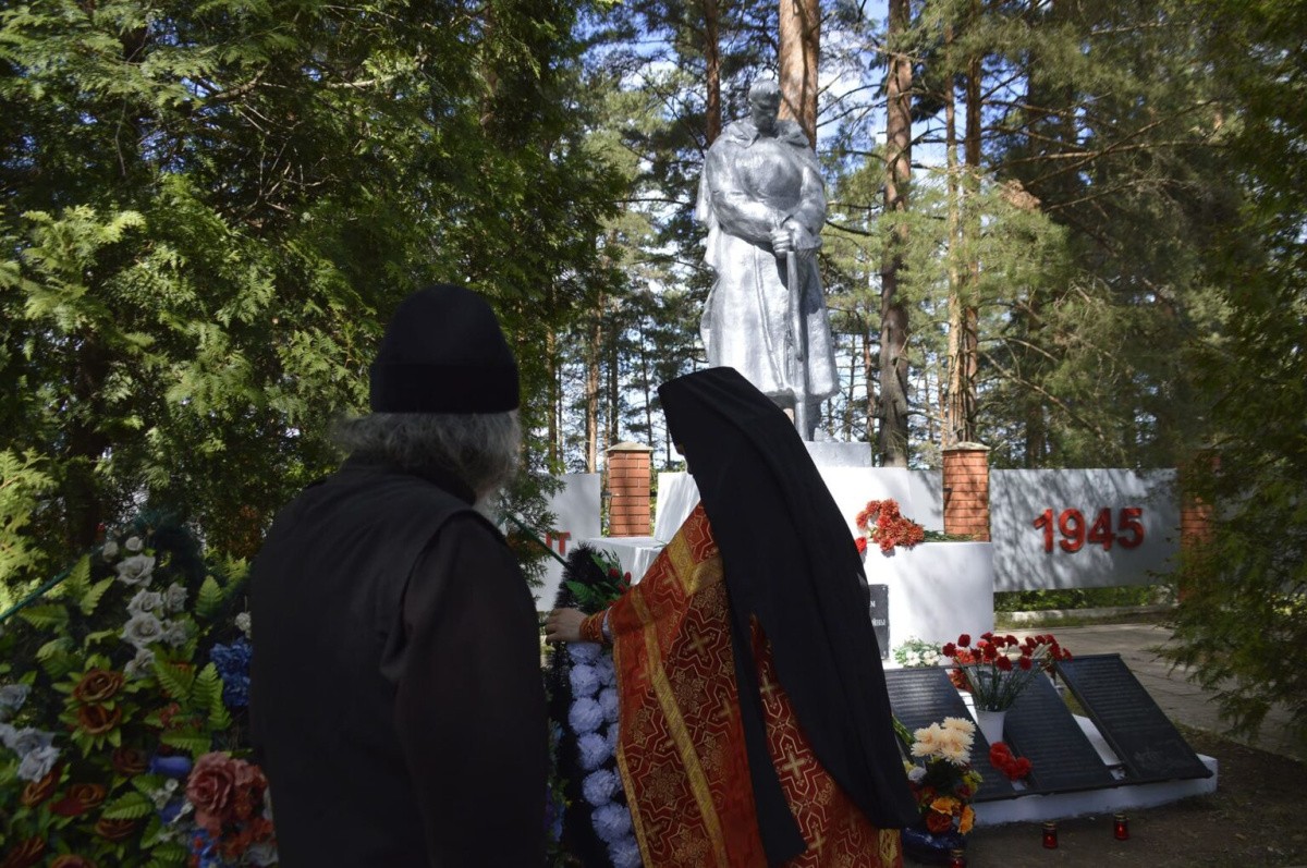 Затем, по ежегодной традиции, духовенство и насельники монастыря, прихожане и паломники проследовали крестным ходом к братскому захоронению советских воинов в деревне Светлица, на котором была совершена лития об упокоении усопших воинов Великой Отечественной войны.