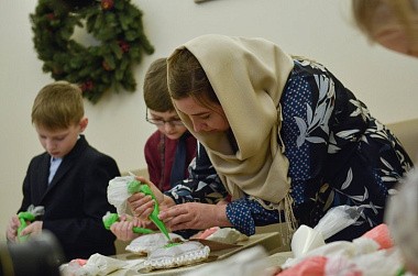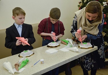 На мастер-классе за украшения пирога отвечали ученики воскресной школы – ребята из начальных классов.
