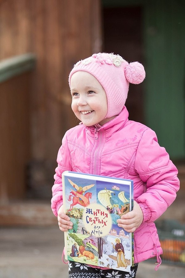 В деревне Лаптево четырехлетней Лиде, улыбчивой девочке, с одного взгляда полюбились две книжки: “Жития святых для детей“ – яркая, красочная книга, несколько экземпляров которой нам прислала одна благочестивая женщина Светлана из Москвы, купив их в лавке Сретенского монастыря, и вторая – музыкальная книжка с клавишами. В коробке были и краски, фломастеры, игры, сладости, мягкий добрый мишка, новые платьица – она все разглядывала с большой радостью, но несколько раз возвращалась к книгам. Померили и новую одежку – всё оказалось впору и очень ей к лицу.