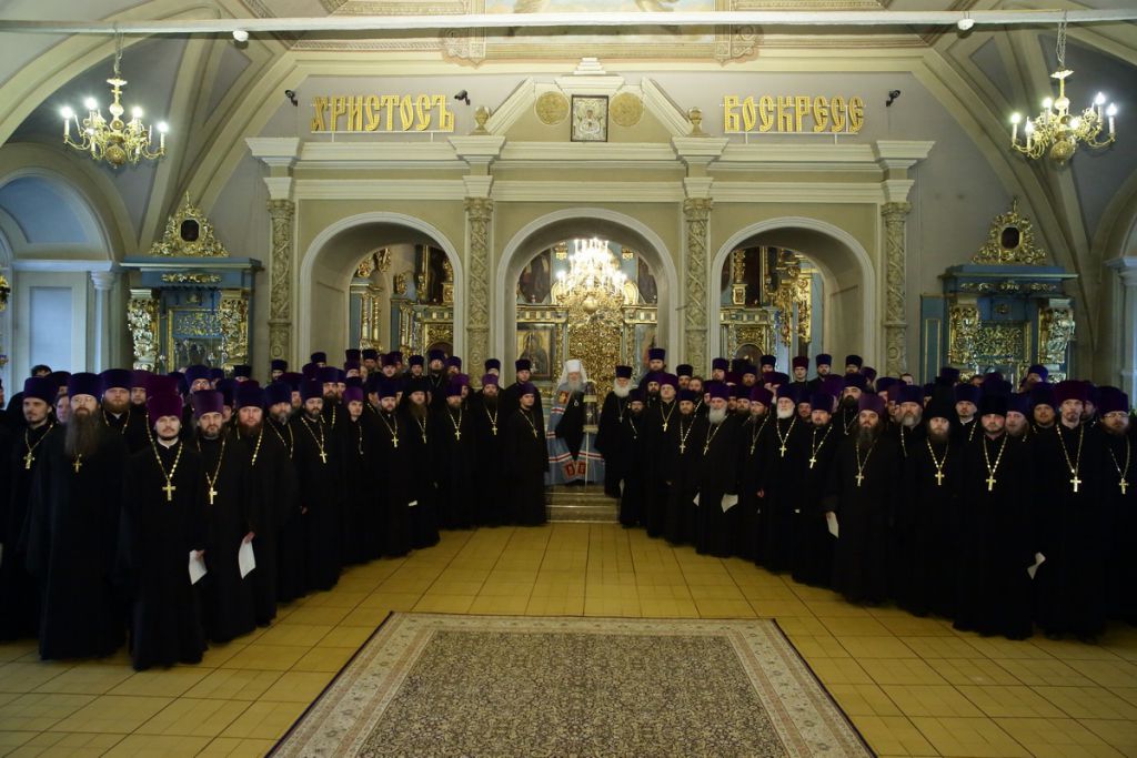 В этом году мы вспоминаем печальные события, которые пережила наша Церковь сто лет назад. Мы должны, в первую очередь, назидаться подвигом Новомучеников и исповедников Церкви Русской и в своих проповедях знакомить прихожан с тем, как Церковь выстояла в период гонений, как мужественны были наши священнослужители. Мы поименно причислили к лику святых около двух тысяч, но в решении Архиерейского Собора сказано, что мы причисляем к лику святых и тех, которые неизвестны нам, но ведомы Богу – а таких святых людей у нас очень много. Мы благодарим Господа за то, что Он дает нам счастье стоять у Святого Престола, свободно проповедовать евангельское учение. Мы должны осуществлять свое служение, подражая Новомученикам и исповедникам Церкви Русской.