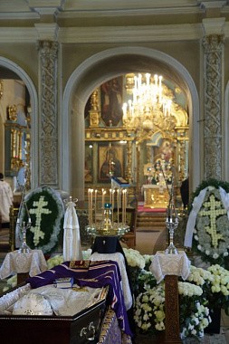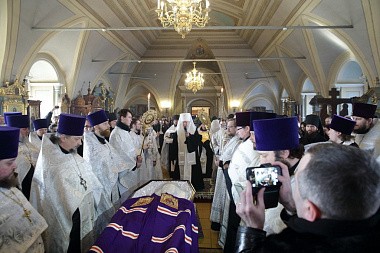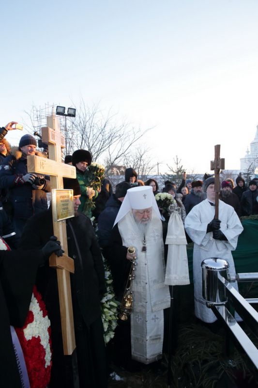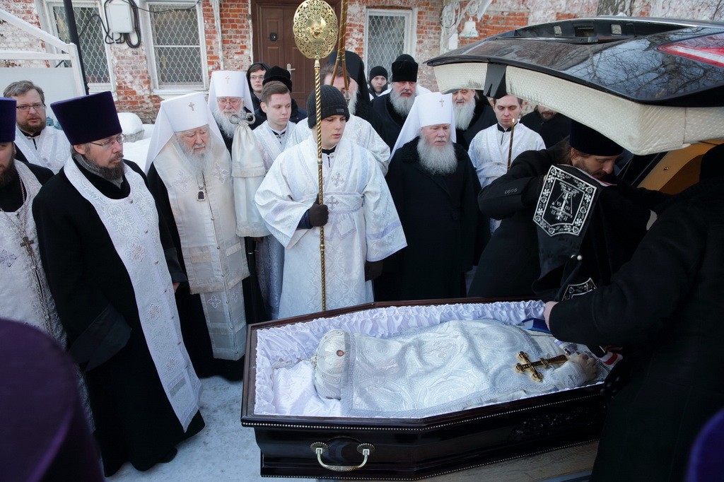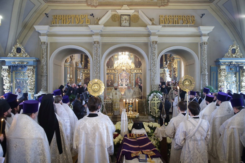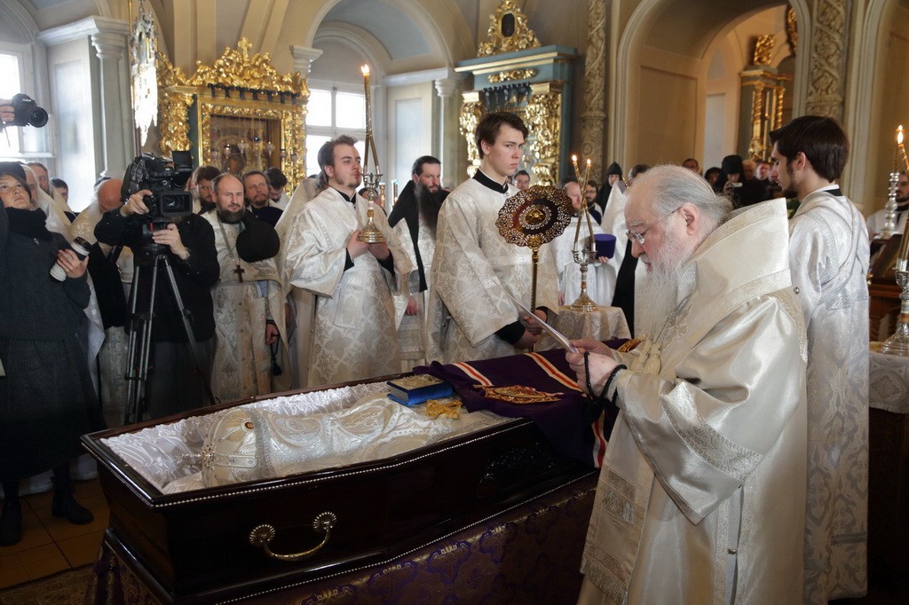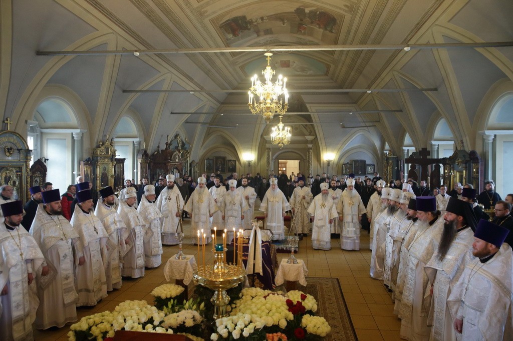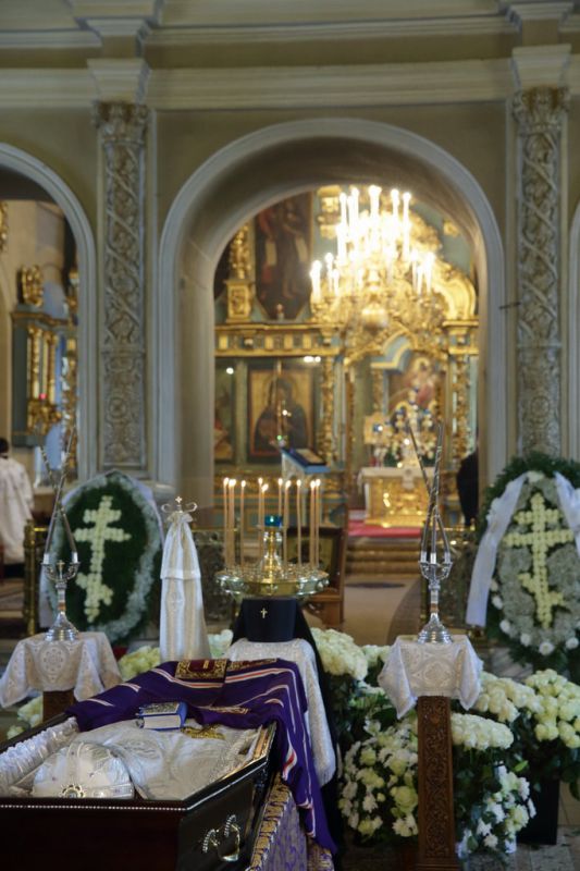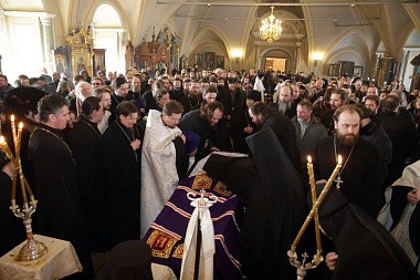 Когда мы хороним человека, то порой теряем разум, пребывая в безутешном рыдании. Но стоя у гроба Владыки, мы исполняемся духовной радостью, вспоминая о подвиге, который он совершил в течение всей своей жизни. Он рос в сиротстве, потому что его отец погиб во время Великой Отечественной войны. Он жил в нищете и сначала, получив высшее образование, стремился нести свое свидетельство детям, а потом, получив от Бога призвание и завершив высшее богословское образование, он всю свою жизнь посвятил служению Московской епархии. Сегодня за Божественной литургией мы вознесли горячие молитвы о его упокоении, а сейчас будем совершать чин отпевания.