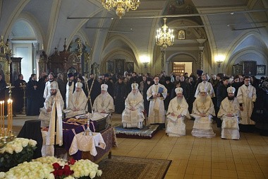 27 февраля 2018 года в Успенском храме Богородице-Смоленского Новодевичьего монастыря Москвы Патриарший наместник Московской епархии митрополит Крутицкий и Коломенский Ювеналий совершил Литургию Преждеосвященных Даров.