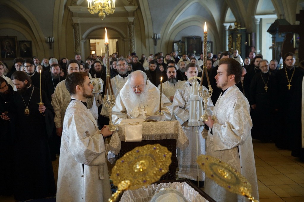 По окончании богослужения духовенство Московской епархии продолжило чтение Евангелия, которое будет совершаться до начала Литургии Преждеосвященных Даров 27 февраля.