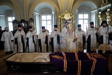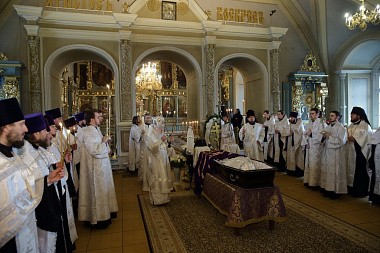 Владыка митрополит совершил панихиду по новопреставленному архипастырю.
