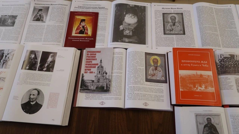 В духовно-просветительском центре монастыря иеромонах Даниил познакомил гостей с выставкой книг, журналов и брошюр «В память вечную будет праведник…», на которой собрана информация о священномучениках, преподобномучениках, мучениках, исповедниках и подвижниках благочестия, родившихся, служивших, работавших, арестованных и пострадавших на Вяземской земле в период гонений на Русскую Церковь.