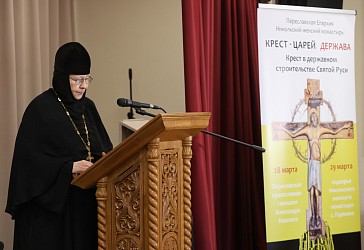 С приветственным словом к собравшимся обратилась настоятельница Никольского женского монастыря города Переславля-Залесского игумения Евстолия (Афонина):