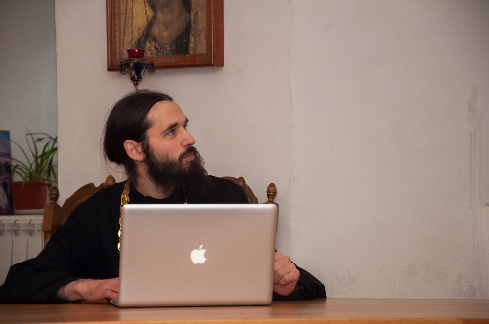После обсуждения доклада настоятель монастыря игумен Пантелеимон (Королев) показал фотографии и зарисовки 1960–1990-х годов, которые ему удалось найти.