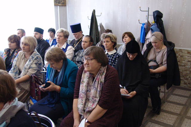 С докладами выступили: О.А.Пальцева, учитель русского языка и литературы МКОУ Людковская СОШ. «В свете веры Христовой»; Н.И. Лебедь, учитель русского языка и литературы МКОУ Барятинская СОШ. «Ф.М. Достоевский о проблемах духовно – нравственного воспитания»; Г.А. Филатова, учитель истории и обществознания МКОУ Долговская СОШ. «Философия Достоевского и формирование личности подростка»; Монахиня Георгия (Полякова), старшая сестра Тихвинского скита д. Чумазово. «Патриотизм как основное направление в духовном и нравственном воспитании подрастающего поколения на примере подвига на Ильинских рубежах»; И.А. Гончаренко, преподаватель воскресной школы при Никольском храме г. Мосальска. «Можно ли назвать Ф.М. Достоевского мрачным и несовременным писателем».