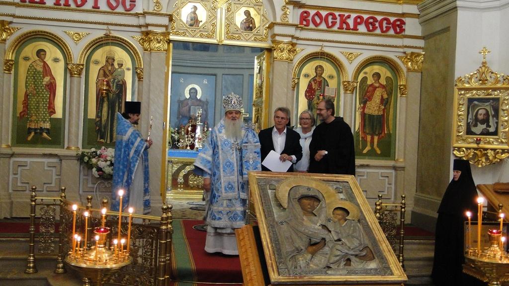По окончании богослужения епископ Роман обратился к графу В. Кастелю и его супруге со словами благодарности. От настоятельницы монастыря игумении Серафимы (Исаевой) с сестрами в дар гостям владыка преподнес рукописный образ Тихвинской иконы Божией Матери.