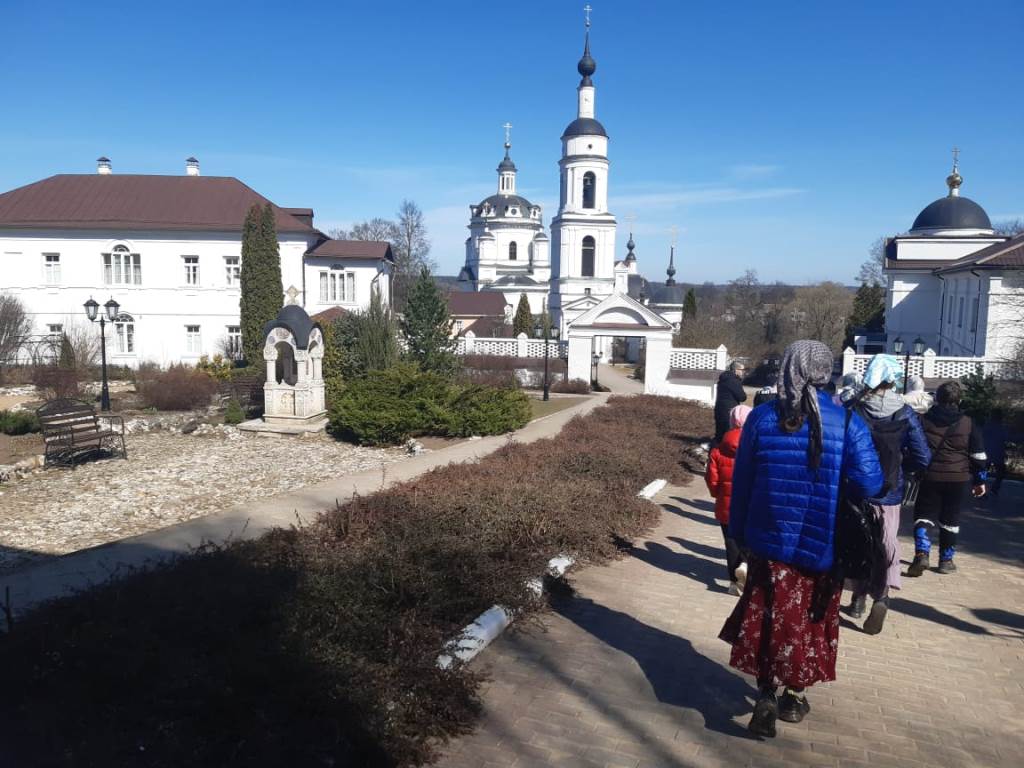 Затем была организована экскурсия по монастырю для группы беженцев, приезд которых в монастырь организовал отдел по социальному служению и церковной благотворительности Калужской епархии. Во время экскурсии было рассказано об истории монастыря, о Малоярославецком сражении в Отечественной войне 1812 года, о монастырских рукоделиях – мозаике, вышивке, иконописи, которую можно было увидеть в храмах и на территории монастыря, о монастырских святынях.