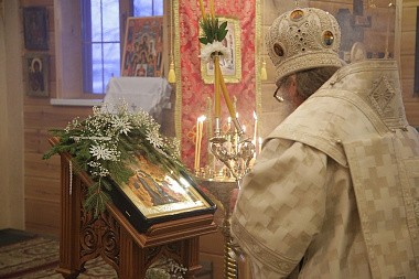За праздничным богослужением Его Высокопреосвященству сослужили: благочинный Красноуфимского церковного округа митрофорный протоиерей Андрей Иванков, помощник ректора Екатеринбургской духовной семинарии по общим вопросам иеромонах Филипп (Киселев), духовенство благочиния и Екатеринбургской епархии.