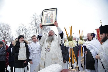 По окончании Литургии митрополит Кирилл совершил чин великого освящения воды источника в честь Боголюбской иконы Божией Матери.