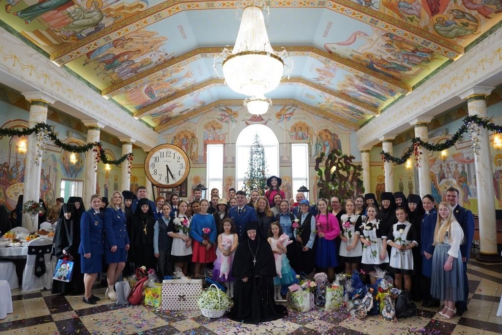 Многие из них – участницы военно-патриотического клуба в честь Святителя Николая – кадетского казачьего отряда. Они приносят казачью кадетскую присягу, осваивают начальную военную подготовку – уставную, строевую, медицинскую. Осваивают верховую езду, традиционную казачью фланкировку шашками, разбирают и собирают автомат Калашникова. Трудно поверить, что они все это успевают. Однако это факт. Может быть, поэтому и смысл сказки им понятен и близок. Поэтому они учатся ценить свое и чужое время – рабочее, учебное. Ценят и праздничное время, когда можно побыть рядом с близкими и дорогими людьми. Близкие и дорогие люди для девочек-сирот и социальных сирот это в первую очередь настоятельница Никольского Черноостровского монастыря игумения Николая (Ильина), ставшая для них всех настоящей Матерью, сестры обители, учителя гимназии, прихожане и гости монастыря. Бывшие сестры монастыря, ставшие настоятельницами и игумениями в других женских монастырях России. Все те, кого они и пригласили на этот праздник.