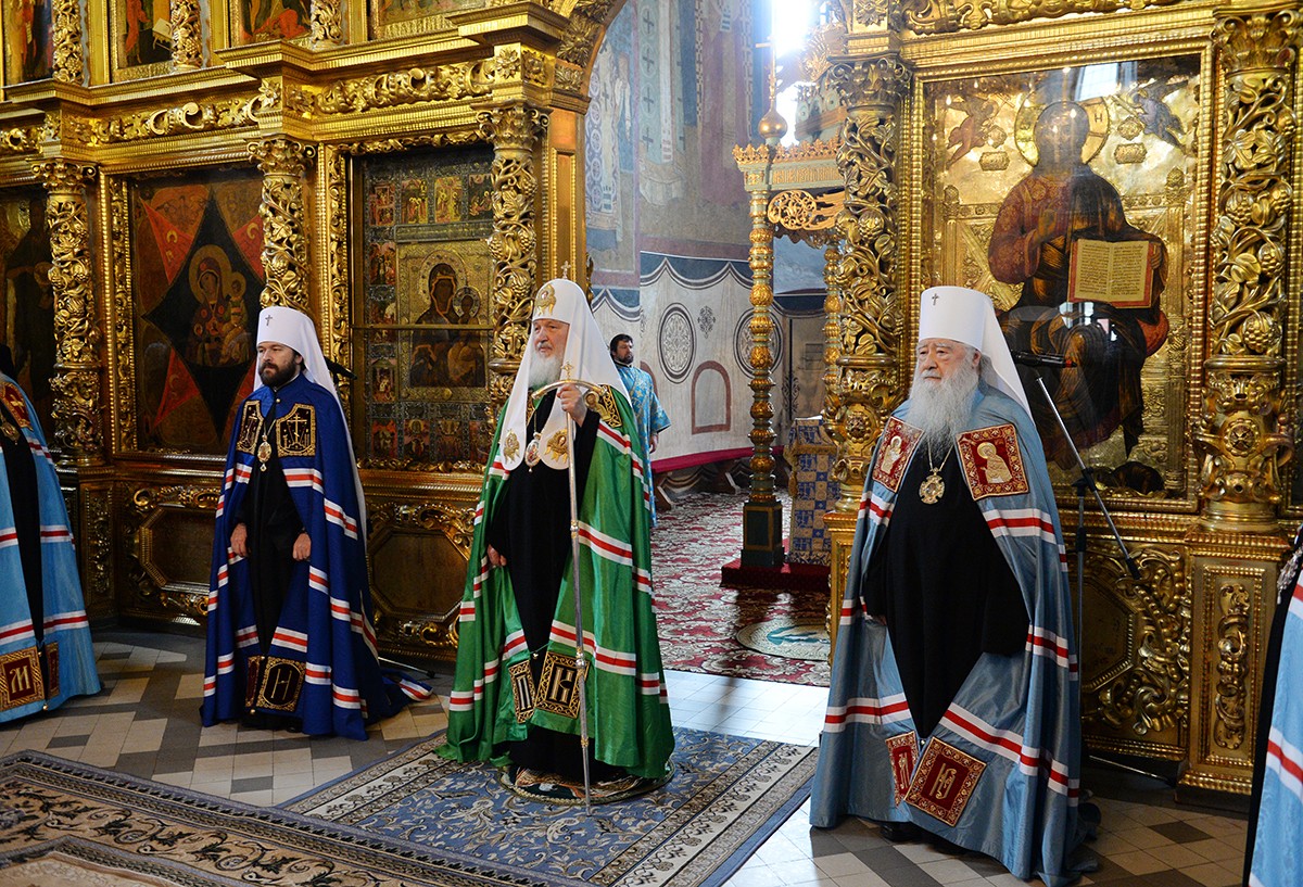 После сугубой ектении Предстоятель Русской Православной Церкви вознес молитву о мире на Украине.