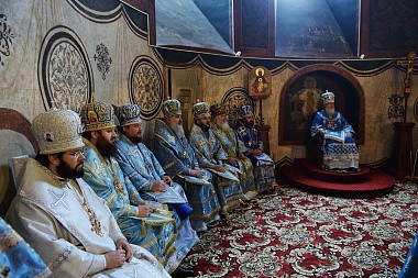 «Ваше Святейшество, Святейший Владыка и отец! Позвольте выразить глубокую сердечную благодарность Вам за Ваше Первосвятительское посещение обители и совершение здесь Божественной литургии. С благодарностью Богу мы можем сказать, что Матерь Божия, Великая Игумения этого монастыря, постоянно проявляет всемерную помощь и заступление во всех сторонах его жизни. И я хотел бы поблагодарить Вас, Ваше Святейшество, за то, что по Вашему благословению и по распоряжению нашего Президента сейчас осуществляется историческая реставрация нашей древней обители.