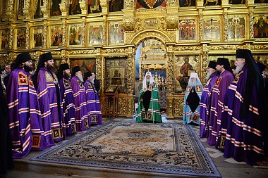 После сугубой ектении Предстоятель Русской Православной Церкви вознес молитву о мире на Украине.