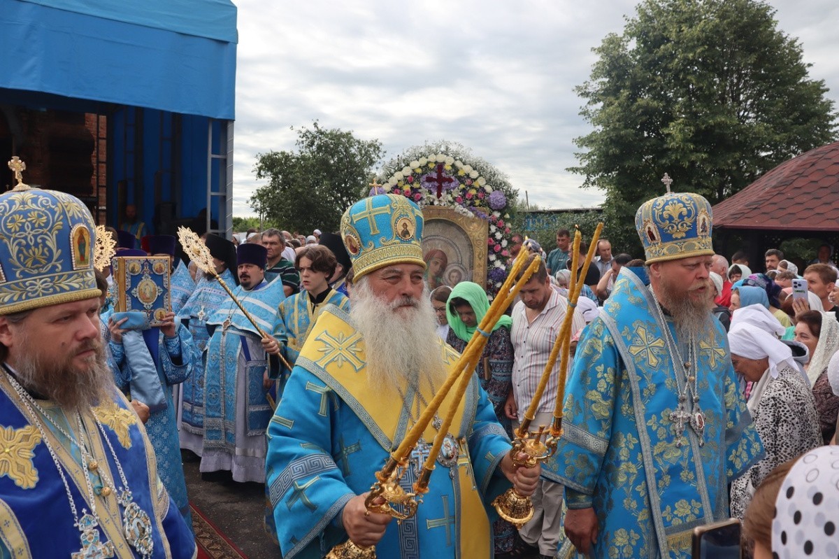 Из-за большого числа прибывших в обитель паломников (более двух тысяч), богослужение совершалось под особым навесом перед крыльцом храма, а святой Коробейниковский образ Божией Матери был размещен на специальном постаменте на улице.