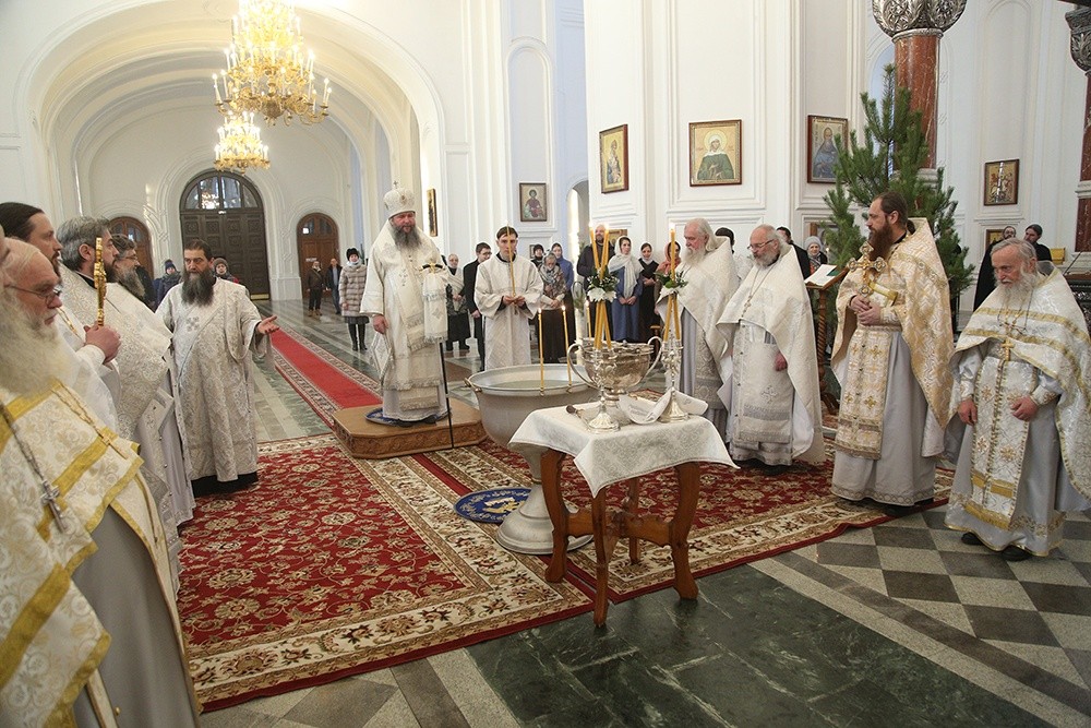По окончании богослужения митрополит Евгений совершил чин Великого освящения воды. Это особый чин, во время которого воспоминается евангельское событие, ставшее освящением самого естества воды через погружение в нее Бога во плоти.