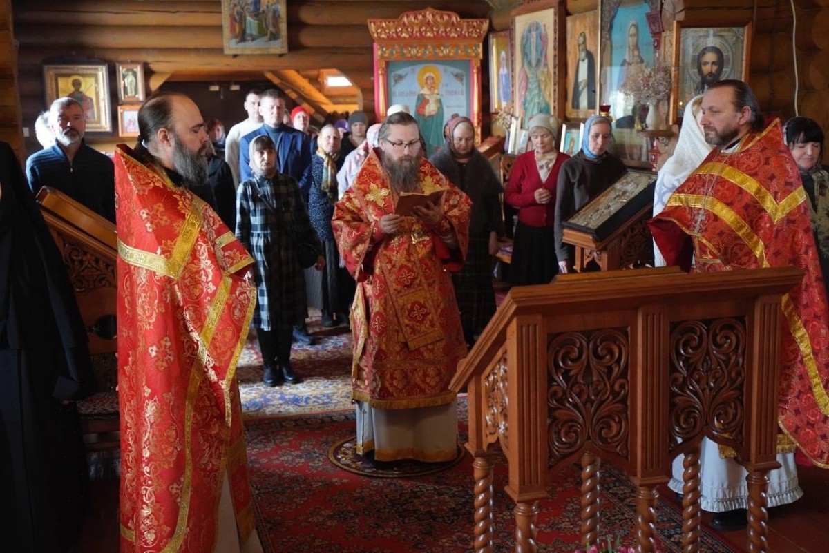 8 марта 2024 года, в день празднования первого и второго обретения главы Иоанна Предтечи, епископ Череповецкий и Белозерский Игнатий иерейским чином совершил Божественную литургию в храме Рождества Иоанна Предтечи Новолеушинского Иоанно-Предтеченского женского монастыря села Мякса Череповецкого района Вологодской области.