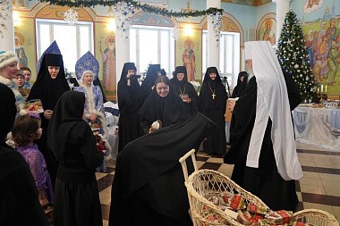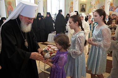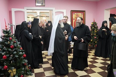 В завершение мероприятия Высокопреосвященнейший владыка выразил благодарность игумении Николае с сестрам и воспитанницам за праздник и преподнес всем собравшимся Рождественские подарки.