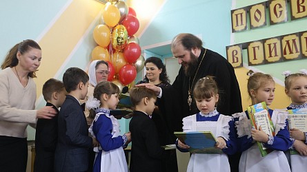 Праздник продолжился в стенах православной гимназии во имя преподобного Варлаама Серпуховского. Учащиеся представили литературно-музыкальную композицию, посвященную Введению Богородицы во храм. Архиепископ Аксий обратился к детям, их родителям и учителям с напутственным словом. Затем по традиции в ряды гимназистов торжественно были приняты первоклассники.
