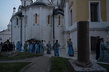 Накануне, 27 августа священноархимандрит обители митрополит Тверской и Кашинский Амвросий совершил в Успенском соборе малую вечерню с чтением акафиста Успению Божией Матери и торжественное всенощное бдение с чином погребения плащаницы Пресвятой Богородицы.