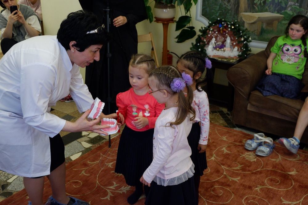 В увлекательной форме девочкам рассказали, как правильно ухаживать за полостью рта, чистить зубы, пользоваться зубной нитью и бороться с кариесом, а также показали мультфильм. В заключение все воспитанницы получили подарки и дипломы зубных спасателей.