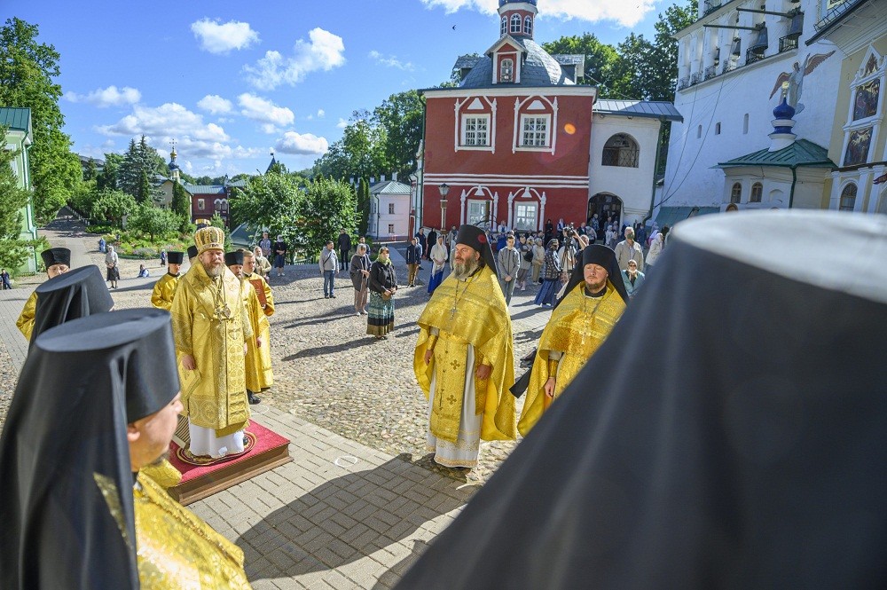 13 июля 2020 года, в день празднования Собору святых 12-ти апостолов, митрополит Псковский и Порховский Тихон совершил Божественную литургию в Свято-Успенском Псково-Печерском мужском монастыре.