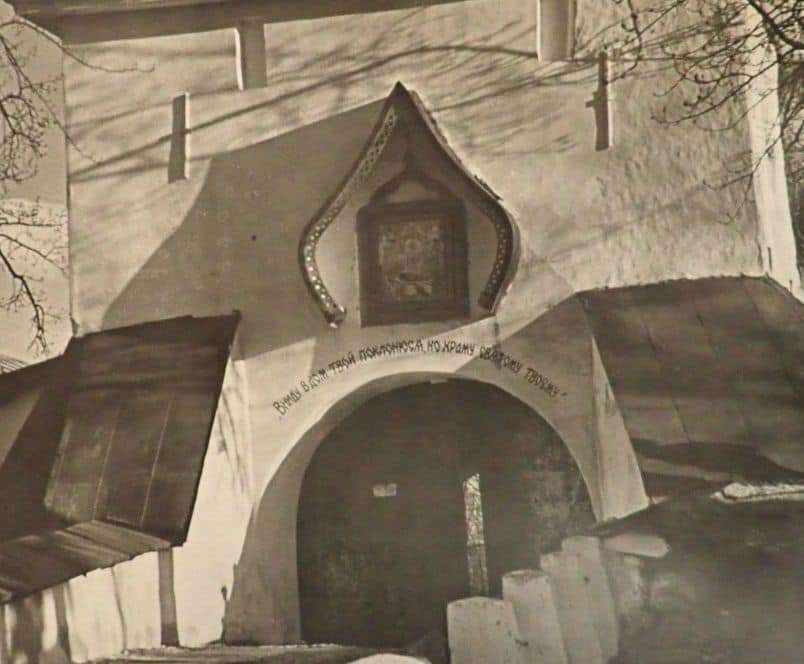 Согласно историко-архивным и библиографическим исследованиям установлено, что надпись над воротами в разное время гласила «Вниду в дом Твой поклонюся, ко храму святому твоему» и «Любитъ Господь Врата Сиона паче всех селений Иаковлевых».