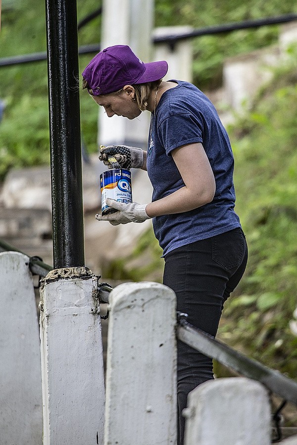Уже за несколько дней действия «волонтеров культуры», которых можно узнать по фиолетовым кепкам, местные жители видимо ощутили присутствия этих бригад, городская среда меняется к лучшему.