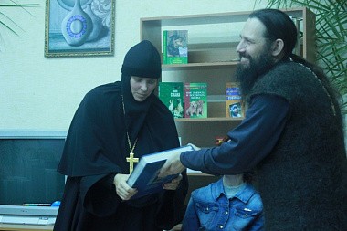 В завершение работы секции иеромонах Гавриил преподнес в дар Сезеновскому монастырю книгу-летопись «Задонский Рождество-Богородицкий монастырь».