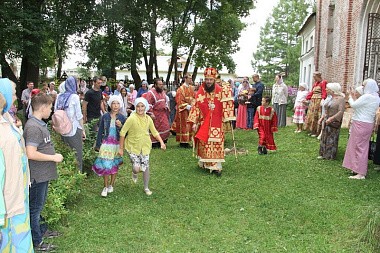По монастырской традиции по окончании литургии состоялся крестный ход вокруг собора Бориса и Глеба и к келии преподобного Иринарха. Под пение тропаря святым мученикам крестный ход остановился у келии преподобного, где 400 с лишним лет назад святой благословил ополчение Минина и Пожарского на освобождение Москвы. Епископ Феодор и епископ Питирим поклонились месту подвига затворника Иринарха, войдя в его келию.