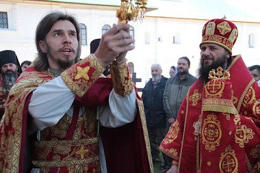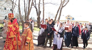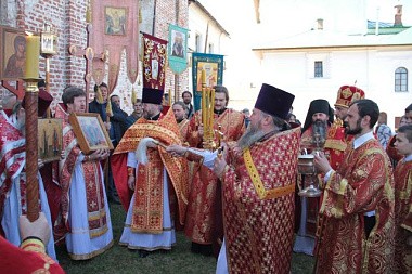 По окончании богослужения состоялся крестный ход вокруг собора Свв. блгвв. князей Бориса и Глеба. Этот крестный ход – древняя традиция монастыря с тем только отличием, что в старину шли вокруг всего монастыря, а по стене еще шел другой крестный ход – именинники, все те, кто носил имена Борис и Глеб.