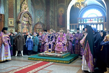 25 марта 2018 года, в Неделю 5-ю Великого поста, день памяти преподобной Марии Египетской, Божественную литургию в Рождество-Богородицком мужском монастыре г. Задонска возглавил архиепископ Элистинский и Калмыцкий Юстиниан в сослужении викария Липецкой епархии епископа Усманского Евфимия и духовенства обители.