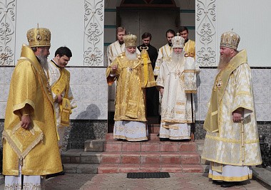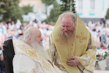 Затем Высокопреосвященнейший владыка Арсений поздравил Преосвященных архиереев, духовенство и многочисленных богомольцев с днем памяти небесного покровителя Задонского монастыря и всей Липецкой земли.
