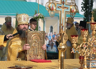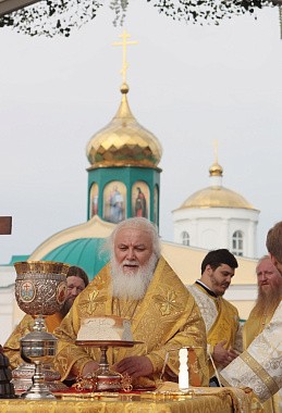 Божественную литургию на площади обители возглавил митрополит Липецкий и Задонский Арсений.