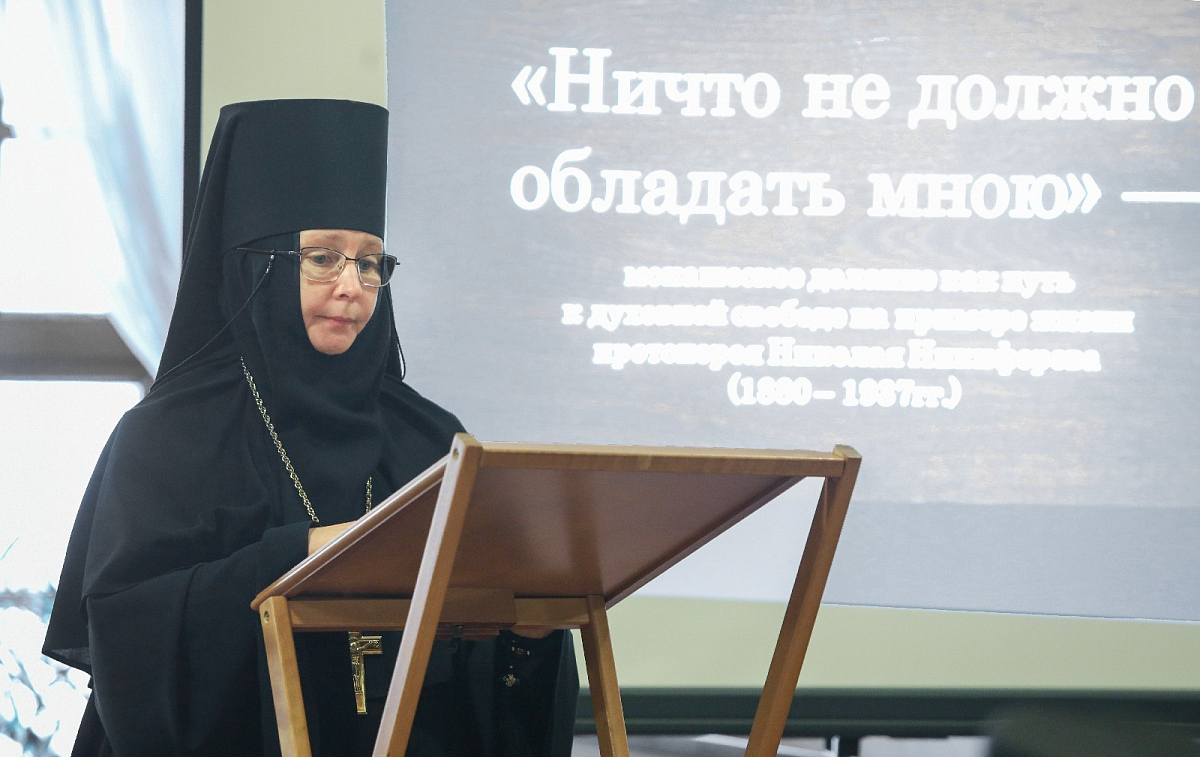 – игумения Анна (Сычугова). Тема доклада: «Ничто не должно обладать мною» – монашеское делание как путь к духовной свободе на примере жизни протоиерея Николая Никифорова (+1937 г.). Казанский монастырь г. Рязани.
