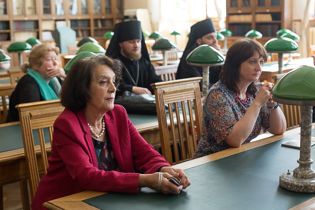 О двух важных рукописях, находившихся в данный момент в процессе сканирования, рассказала старший научный сотрудник рукописного отдела РАН Вера Подковырова. Это ирмологион – нотная рукопись конца XVIII века, которая использовалась во время богослужения, и литийный Синодик, в котором записаны имена Патриархов, епископов, Великих князей и монашеских родов для поминовения в обители. Аналогов рукописям библиотеки Александро-Свирского монастыря нет ни в одном хранилище.