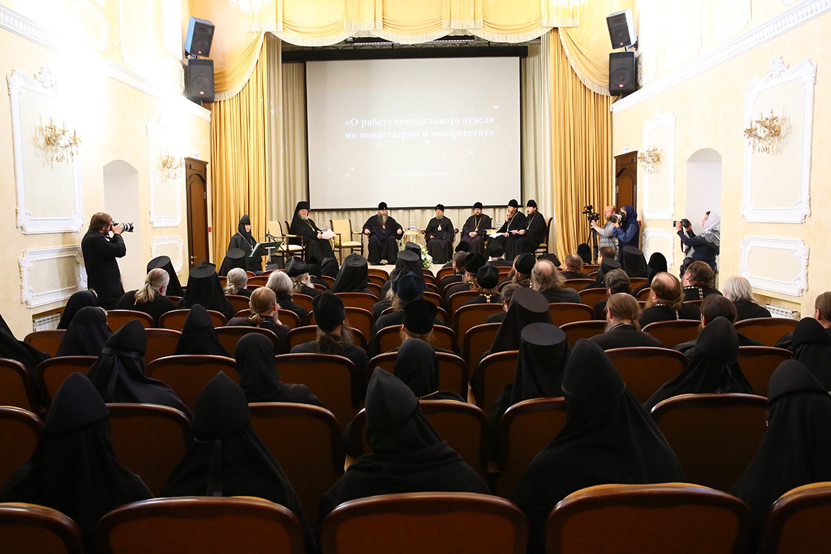 23 ноября участники совещания собрались в зале Духовно-научного центра Саровской пустыни. Прозвучали доклады игумении Иулиании (Каледы) «О работе Синодального отдела по монастырям и монашеству», преподавателя Нижегородской духовной семинарии иеромонаха Лаврентия (Собко) «Зачем нужно образованное монашество», насельника Вознесенского Печерского монастыря игумена Олега (Осипова) «Воля Божия и воля человеческая – свобода выбора».