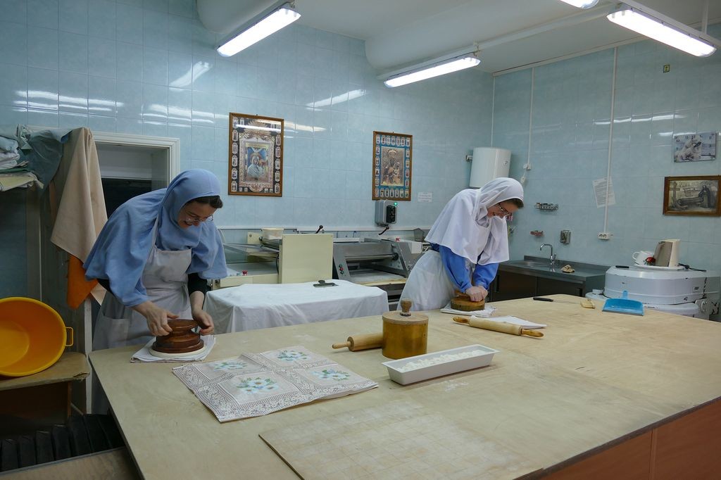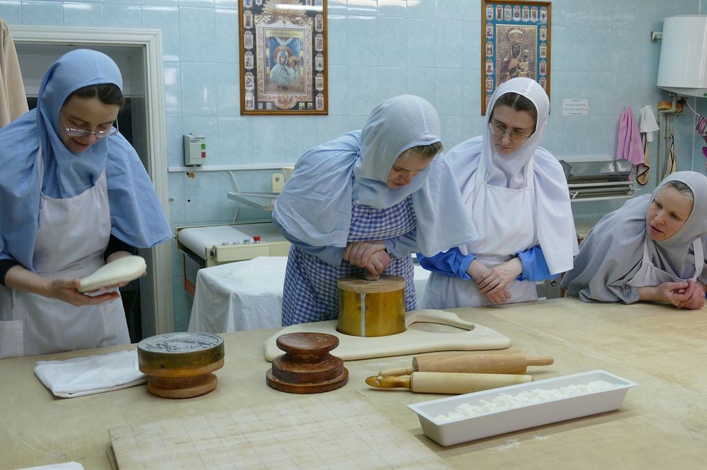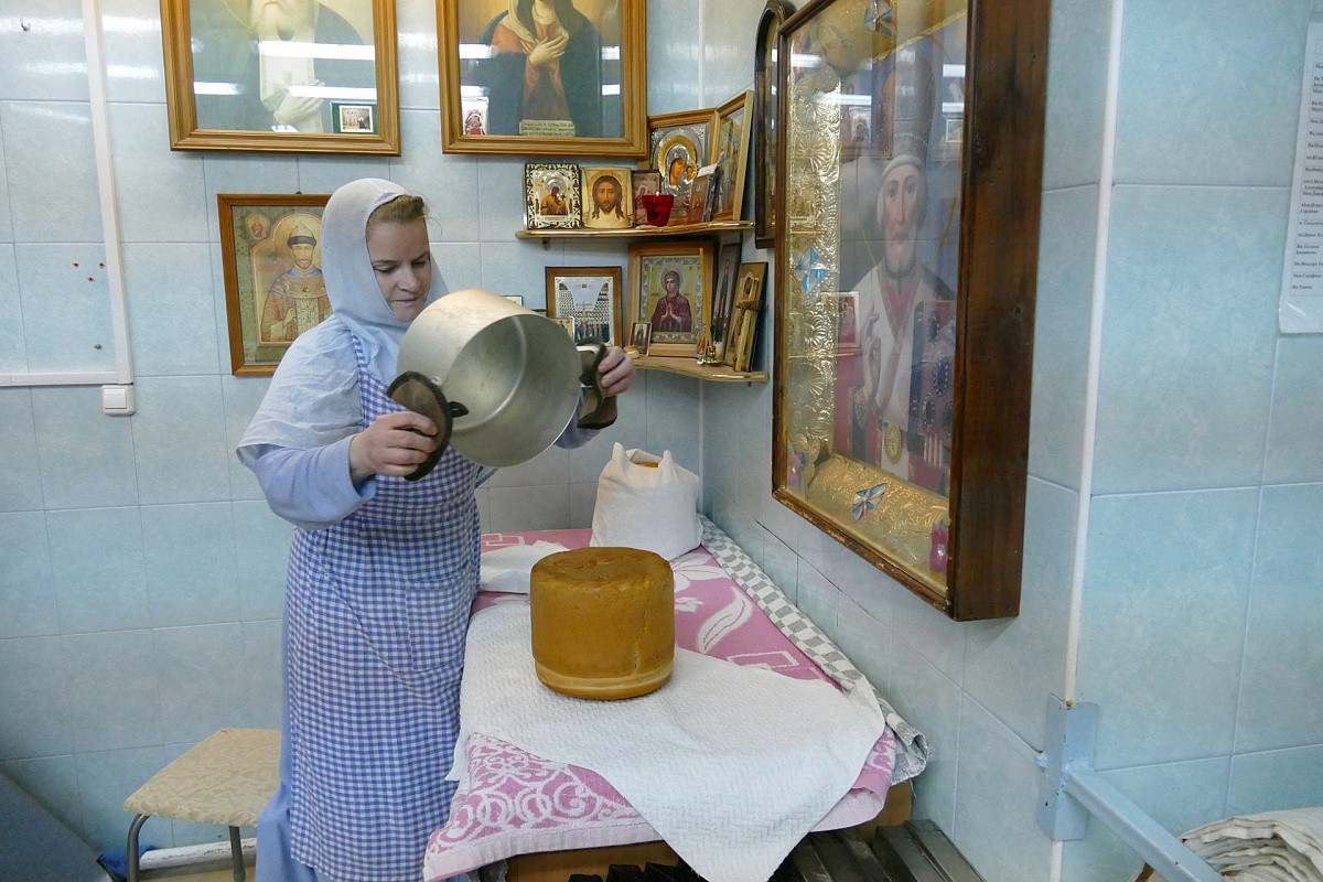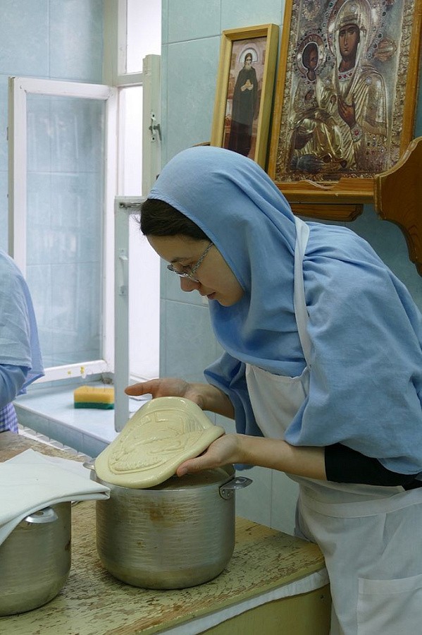 За одну выпечку сестры изготавливают девять артосов. В день бывает по три выпечки. До Пасхи необходимо изготовить сто пятьдесят артосов – именно столько нужно для монастыря, его скитов и подворий.
